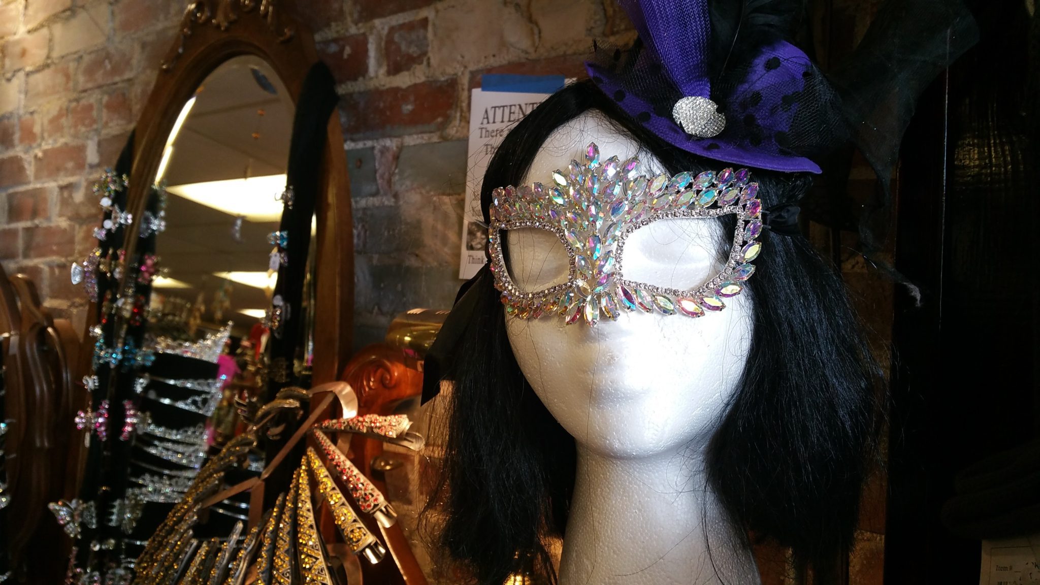 (Holly –>) What’s the best tip you have for a couple planning a wedding? (Barb –>) I think to make it really really different so that it’s really memorable for not only you but your guests, and family, and everybody else. I just think you should make it different, step out of the box. (Holly –>) You’re a great place for stepping out of the box here at Grandpa’s Attic, what kind of unusual wedding things do you have around the store? (Barb –>) Well we do have typical things, we have tiaras which a lot of brides wear. We have very fancy Mardi Gras masks which we provided for a Mardi Gras reception where all of the reception people had masks on, so we sold these really fancy masks for that. The wedding toppers especially Halloween wedding themed but we sell those all year round. I guess that day of the dead is very popular right now. (Holly –>) and then you had dragon toasting glasses. (Barb –>) We did have a guy come in that bought the dragon mugs for his groom’s men so that at the reception they could all toast with the dragon mugs. So that was fun, he bought like 11 of them, he had 11 grooms men and they all had their mugs. (Holly –>) You also had dragon heart toppers and you were saying those could be customized. (Barb –>) Yes you can paint those they are poly resin and they can be painted to match your colors, they’re pink and blue now but they can be any color you want them to be. (Holly –>) And then you have rubber ducky wedding parties (Barb –>) yes we do, we carry the whole wedding party in rubber ducks and we have the bride and the groom, and the brides maids and the grooms men, and even a little bitty ring bearer and flower girl. (Holly –>) So you can find all kinds of useful accessories for your wedding you were telling me about all of your tiara’s and your bling accessories are typically quite a bit less expensive than at a regular wedding store so this is a great resource for your Rhine stone necklaces and Rhine stone accessories, your hair pieces, your Rhine stone masks so that you have these great deals here as well as other eclectic wedding.