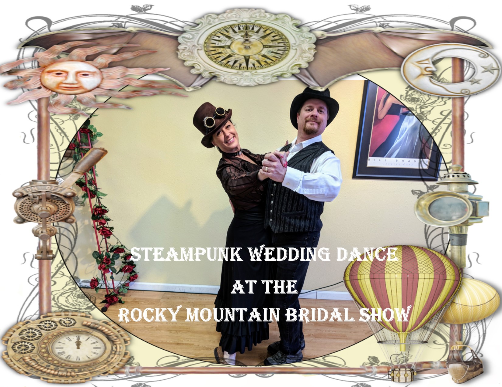 Steampunk is the mixing of mechanical technology, like clockwork gears with Victorian style, like top hats and tails. Victorian elements with a contemporary twist are a fan favorite for Steampunk weddings. So, for the Rocky Mountain Bridal show the Adventures in Dance team put together a steampunk wedding dance show.