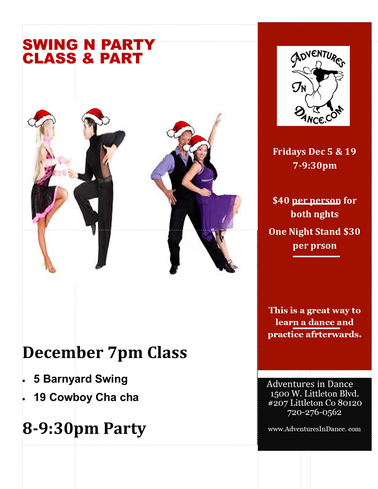 Enjoy a Swing group class followed by a fun practice party and social two Fridays a month. Each Friday will be a different swing or club dance, then a potluck practice dance party for happy dance club members.