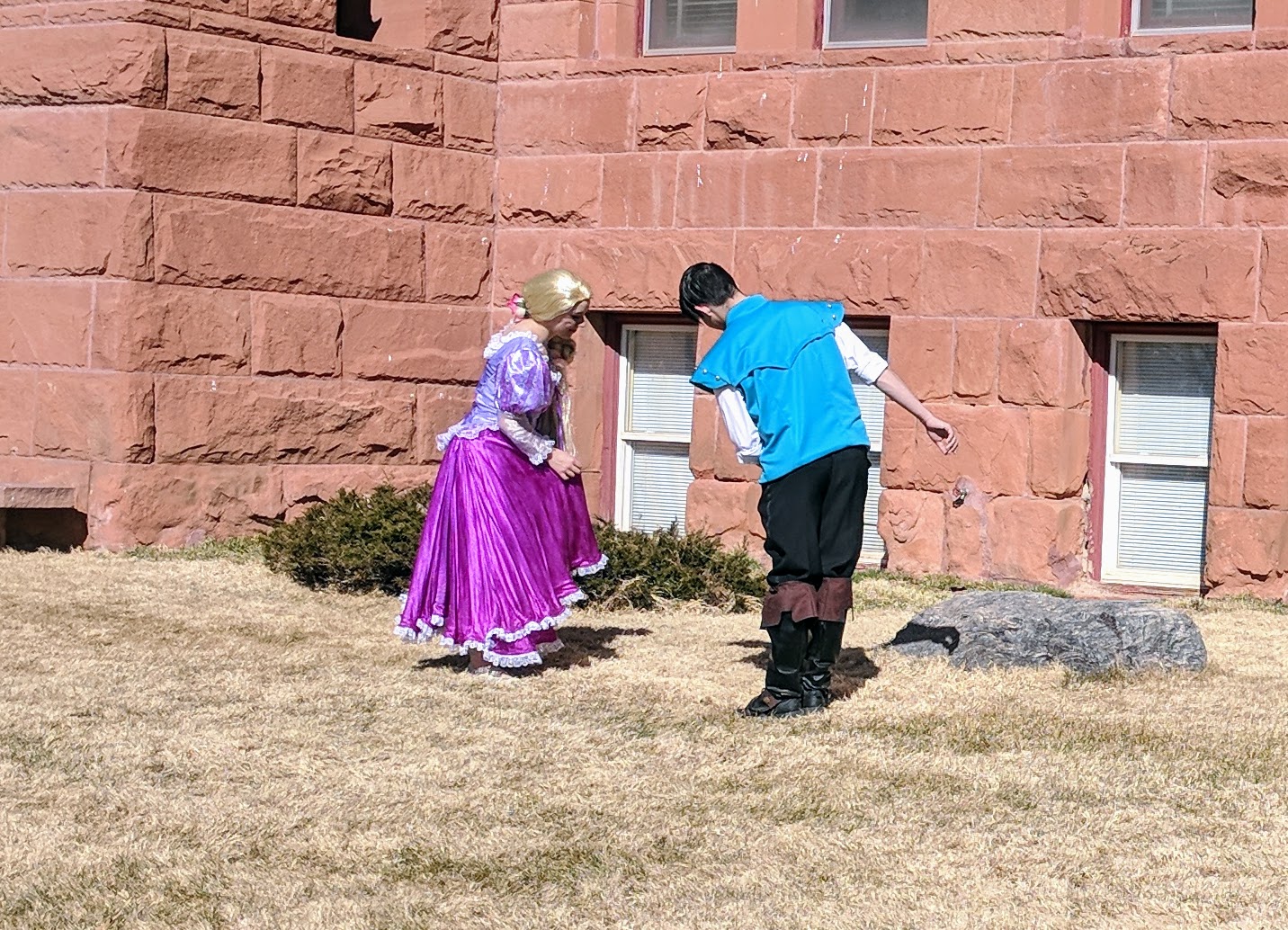 We filmed on the lawn of the Westminster Castle in Colorado. It is a big red castle in Westminster owned by the pillar of fire. It was originally built to be the Westminster university in 1893 designed by Stanford White. This Richardsonian Romanesque style castle is built out of red sandstones mined from Red rocks and Manitou area.