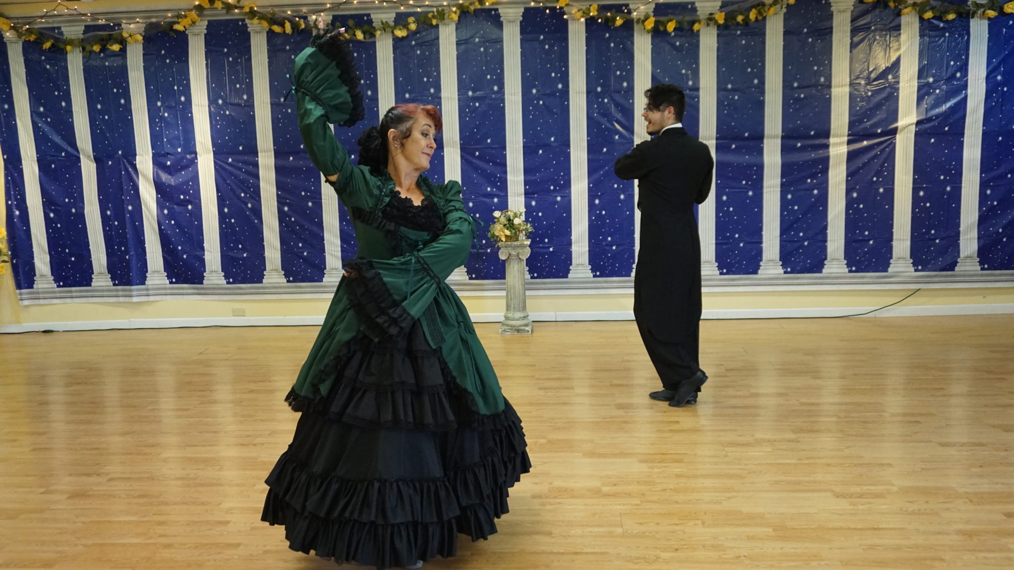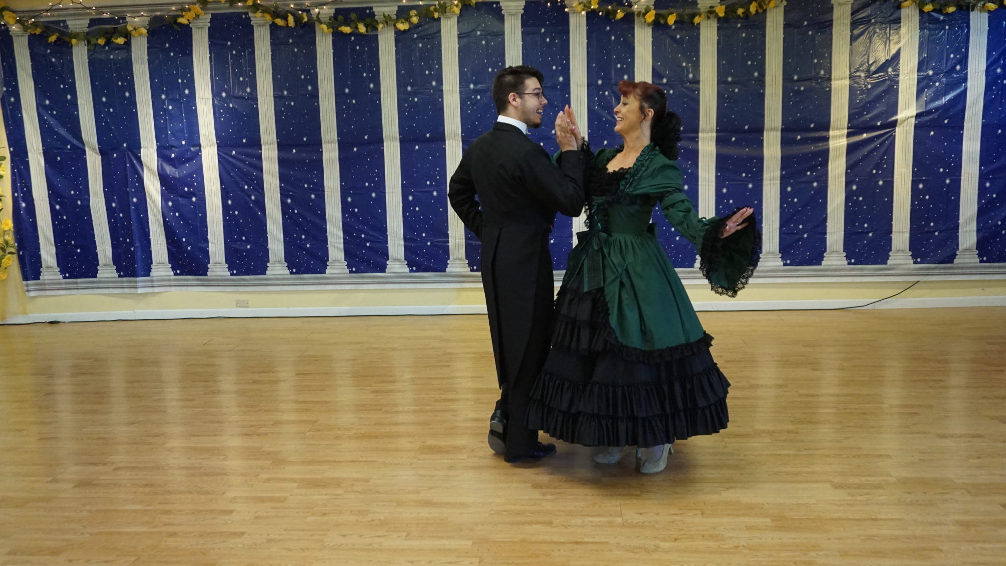 This is a partnership dance. It will begin with the Couples making a circle in skaters position side by side with the man’s left shoulder to the center of the circle holding cross hands with the lady in front of him, her right shoulder to the outside of the circle.