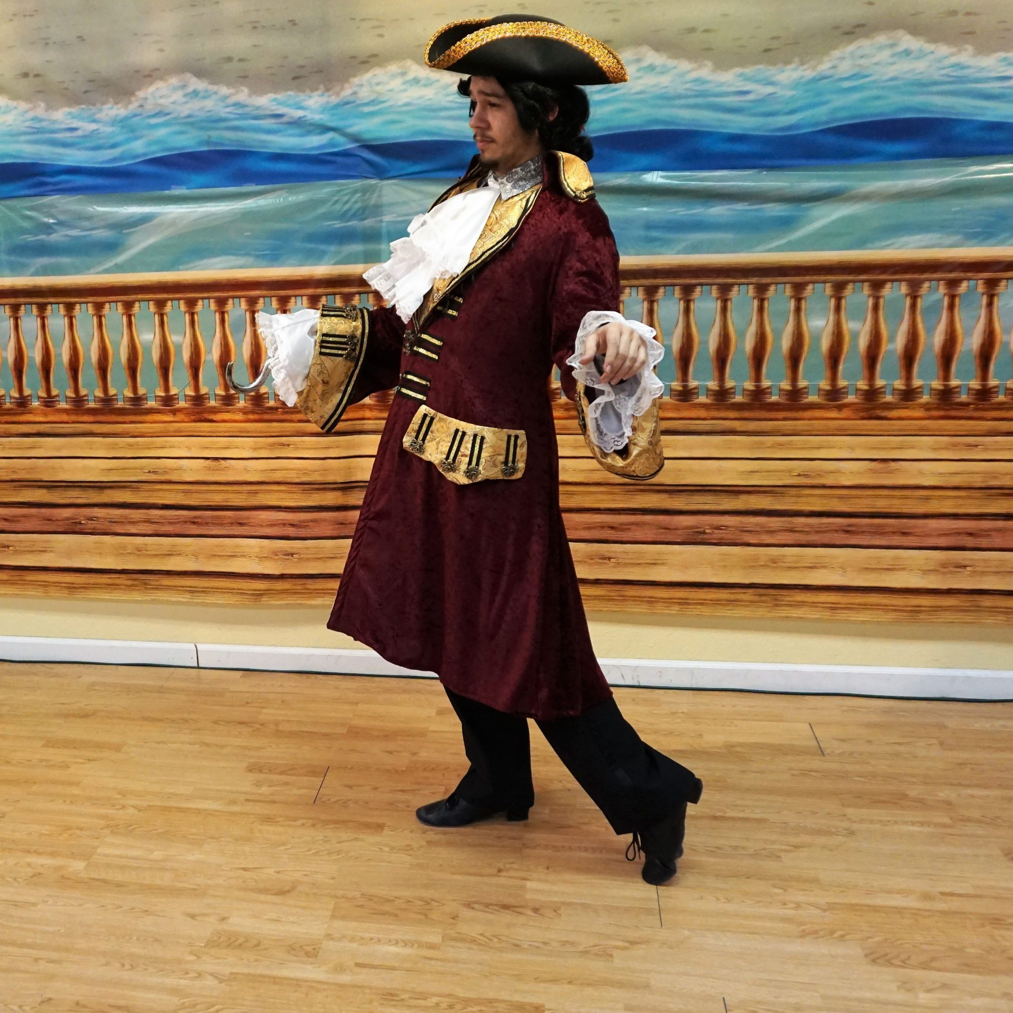 King of the seven seas Captain Hook rules the skies. Hook is said to have served under the pirate Blackbeard where he excelled at villainous piracy. Thought dancing was most useful when seas were calm, Royal Navy Captain James Cook (1728-1779) made his crew dance to keep his men in good health during a voyage. Certainly, the Peter Pan pirates liked to sing and dance. I opened my dancing with water (on the water) with the sailor shuffles from our Jive (link) routine. It bears a resemblance to the traditional Celtic Hornpipe dance and may have descended from this dance.